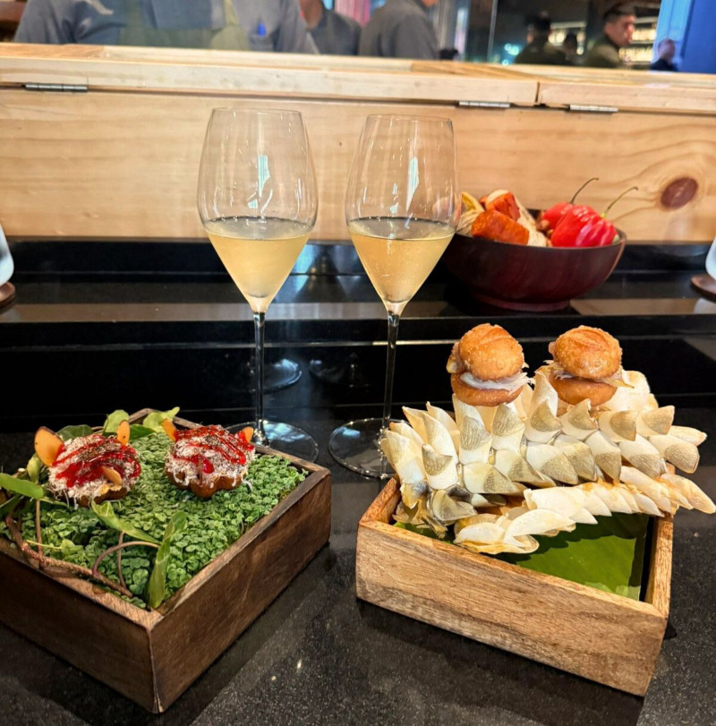 Com mais de uma centena de prêmios nacionais e internacionais, incluindo medalhas de ouro no London Wine Competition, Vinus Argentina e La Mujer Elige, o Salton Evidence Cuvée Brut reforça a presença do espumante brasileiro nos paladares mais exigentes do mundo. Este rótulo é reconhecido por sua elegância, frescor e complexidade, com notas de frutas brancas, brioche e amêndoas. Ele harmoniza perfeitamente com a diversidade do menu degustação do Maido, oferecido com os pratos Butifarra (feito com presunto de paiche defumado e mel de abelha nativa) e Madre de Dios (com noz de Bahuaja, um ingrediente amazônico).