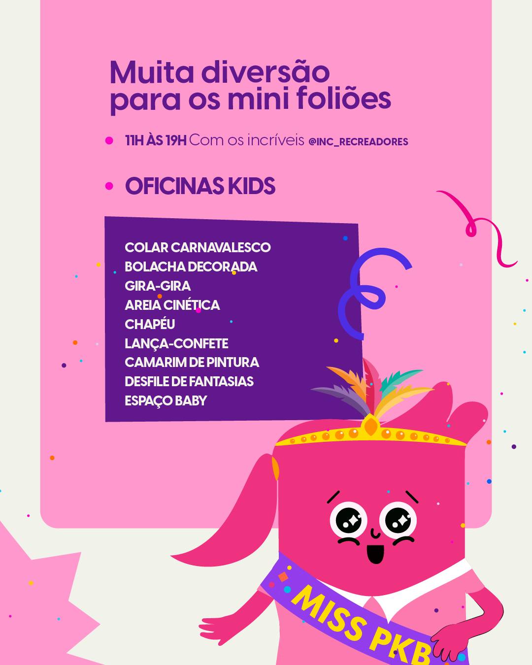 Durante o Carnaval o PkB terá outras atividades para deixar a folia ainda mais animada. Confira a seguir: